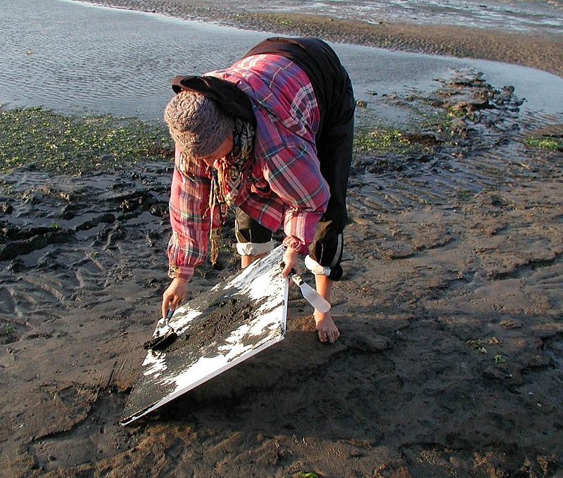 I work at home in my studio or in my countless and always changing outdoor “nature studios” in the world around me.